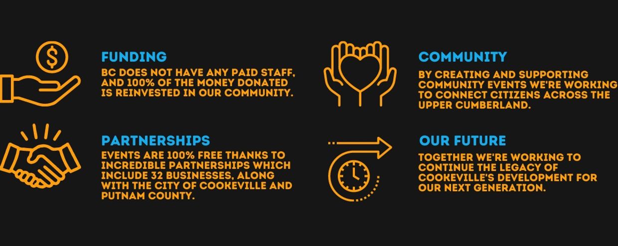 Better Cookeville has no paid staff, and 100% of the money donated is reinvested in our community.